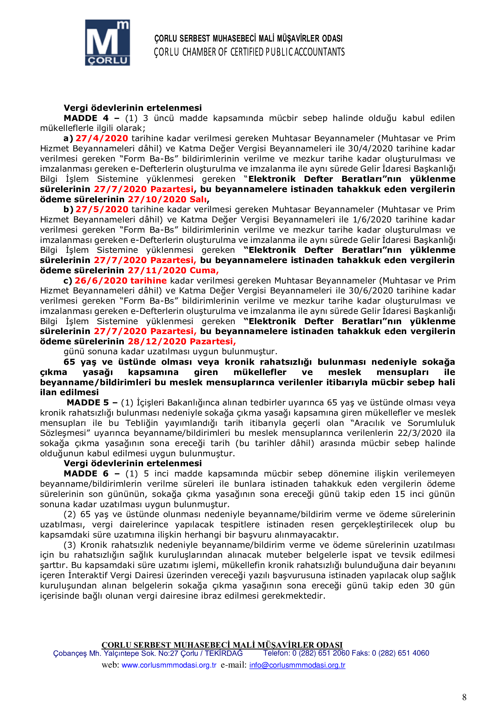 Vergi Beyanname Ve Bildirimlerinin Ertelenmesi İle İlgili Açıklamalar