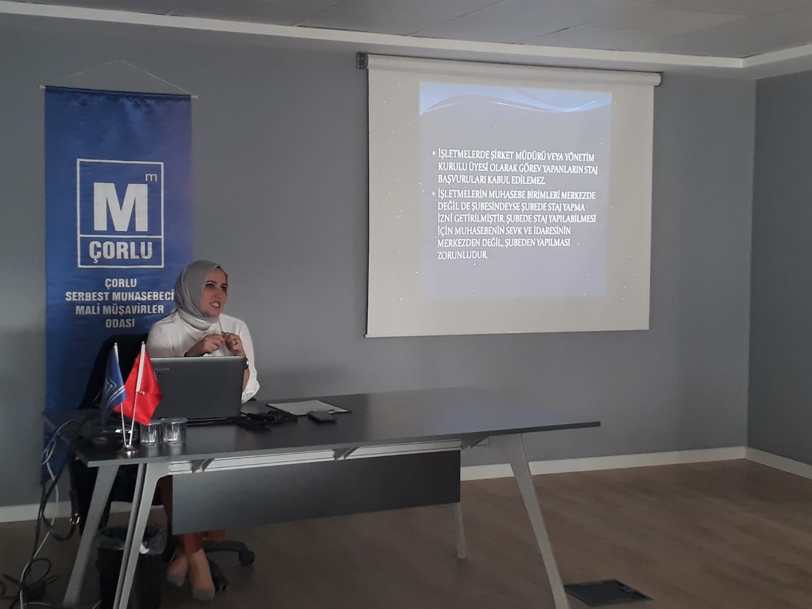 SMMM Stajyerlerinin Zorunlu 1 Günlük Eğitim Programı çerçevesindeki eğitimleri 10.12.2019 tarihinde Odamızın Eğitim Salonunda,Staj Eğitim ve Teknoloji Komitesi Bşk.Sn SMMM Nigar ALEMDAR YETKİN tarafından verilmiştir.Meslektaş adaylarımıza başarılar dileriz.
