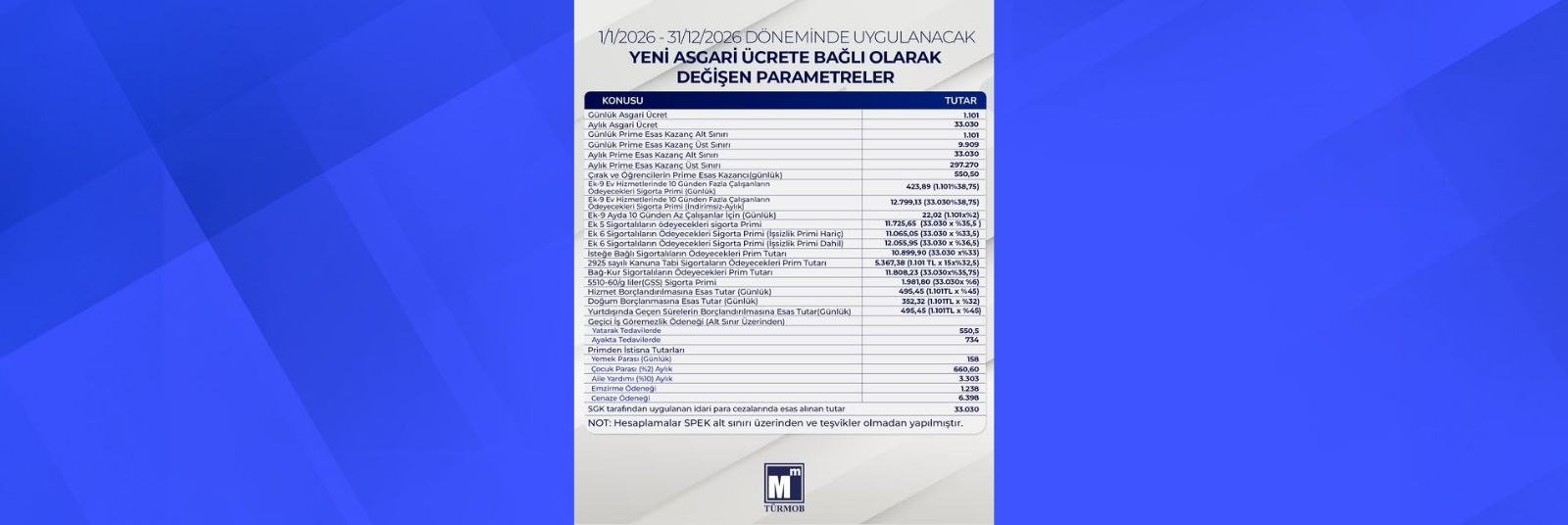 01.01.2026 – 31.12.2026 Döneminde Uygulanacak Yeni Asgari Ücrete Bağlı Olarak Değişen Parametreler