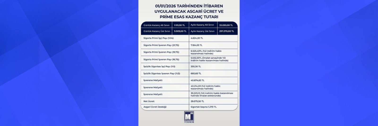 01.01.2026 Tarihinden İtibaren Uygulanacak Asgari Ücret ve Prime Esas Kazanç Tutarı Belli Oldu