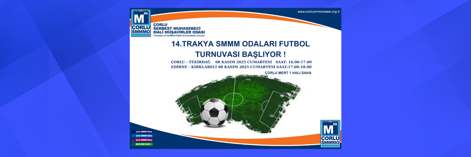 Edirne SMMM Odası, Kırklareli SMMM Odası, Tekirdağ SMMM Odası ile Çorlu SMMM Odası'nın katılımıyla düzenlenen ve bu yıl 14'üncüsü yapılacak olan Trakya Mali Müşavir Odaları Futbol Turnuvası ilk tur maçları, 08 Kasım 2025 Cumartesi günü yapılacak.