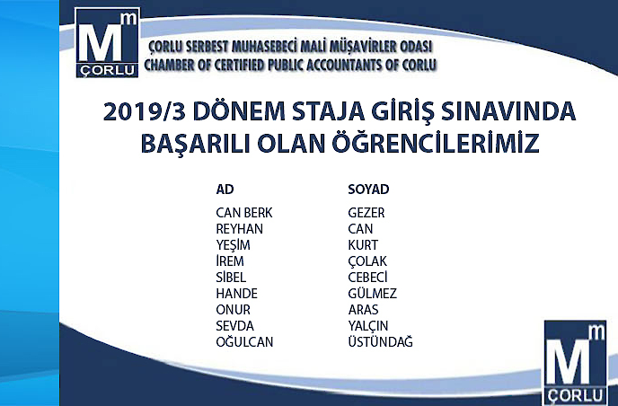 2019/3 Dönem Sınavında Başarılı Olan Öğrencilerimiz