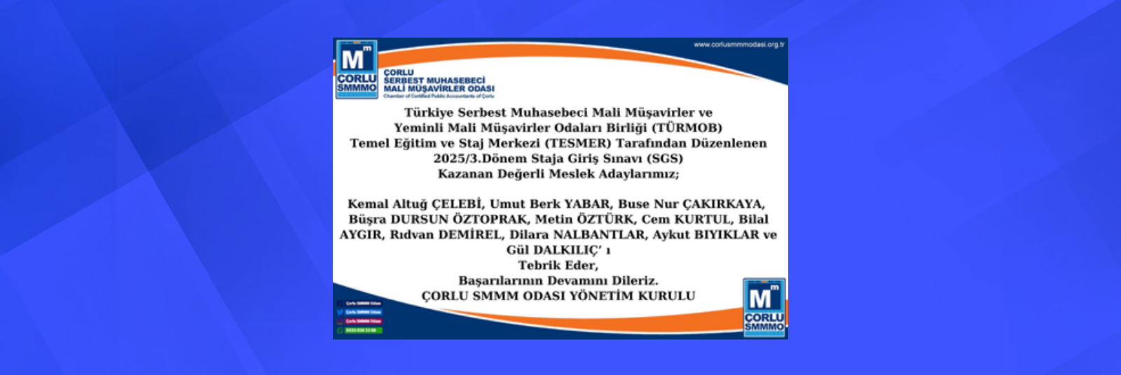 2025/3. DÖNEM SGS SINAVINDA BAŞARI GÖSTEREN DEĞERLİ MESLEK ADAYLARIMIZI EN İÇTEN DUYGULARIMIZLA KUTLARIZ!