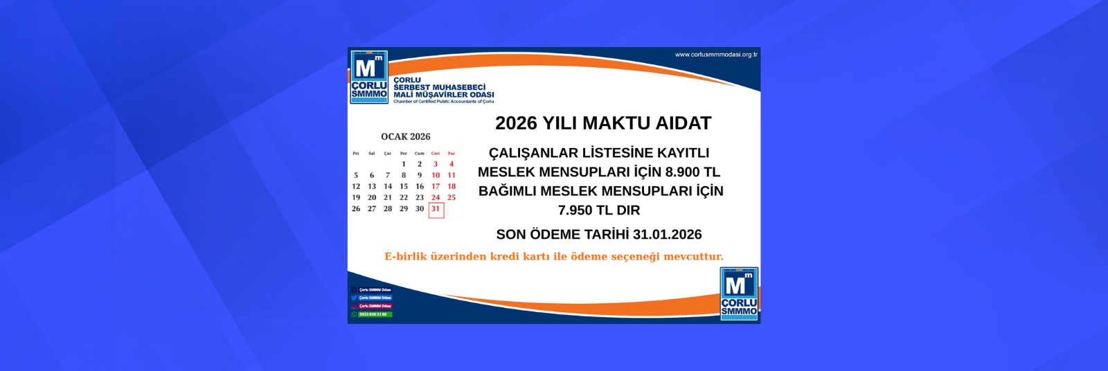 İşletmelerde Bağımlı olarak mesleki faaliyetlerini devam ettiren Meslek Mensuplarının 2026 Yılı Maktu aidatı 7.950 TL.dir. (6.Olağan Genel Kurul’da onaylanan Bütçe kararı ile).