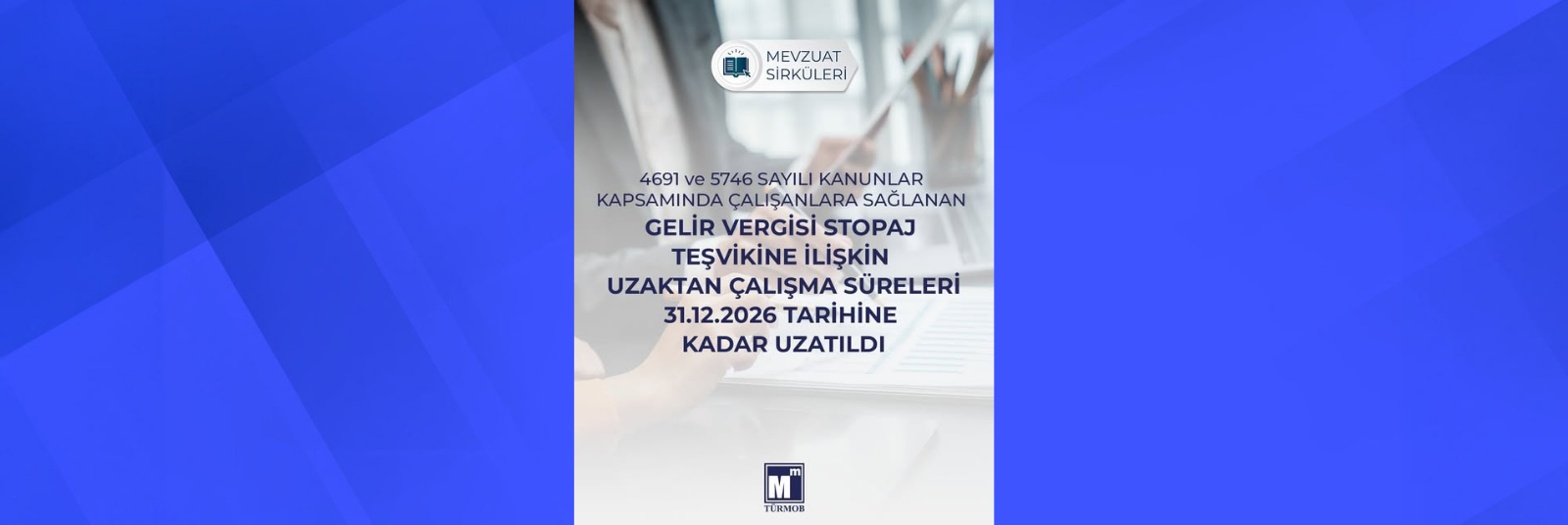 4691 ve 5746 Sayılı Kanunlar Kapsamında Çalışanlara Sağlanan Gelir Vergisi Stopaj Teşvikine İlişkin Uzaktan Çalışma Süreleri 31.12.2026 Tarihine Kadar Uzatıldı