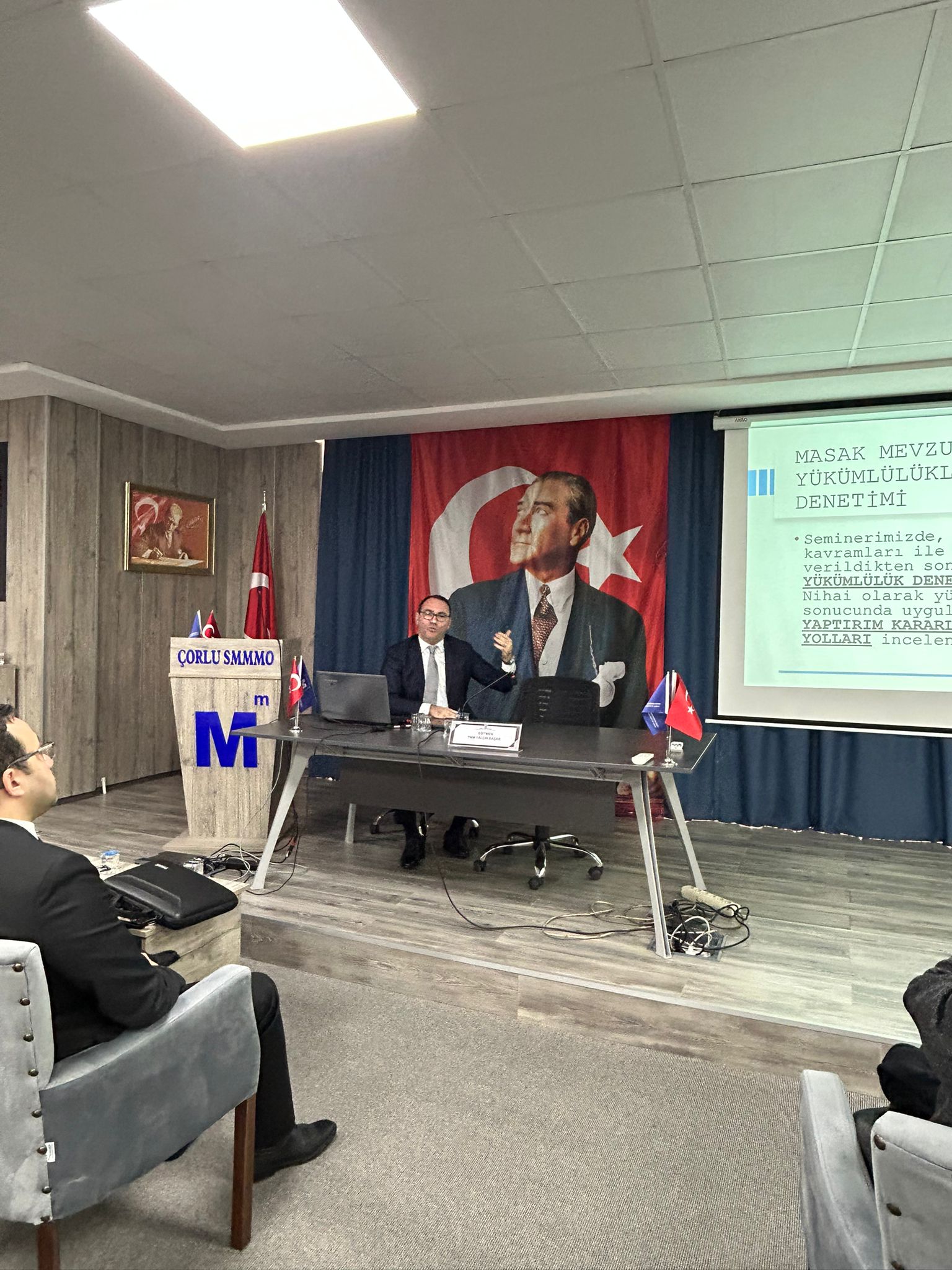 Çorlu Serbest Muhasebeci Mali Müşavirler (SMMM) Odası ile Sürgem işbirliğiyle düzenlenen ve 05 Şubat 2026 Perşembe Günü saat 11.00'da gerçekleştirilen “Masak Yükümlülük Denetimleri" konulu YMM Yalçın BAŞAR’ın konuşmacı olarak katıldığı eğitim seminerini; kayıt yaptıran Oda Üyelerimiz ve muhasebe çalışanı birlikte takip etti.