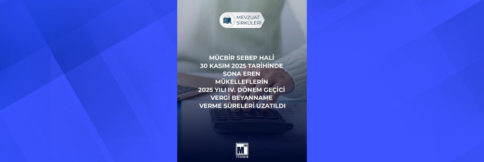 Mücbir Sebep Hali 30 Kasım 2025 Tarihinde Sona Eren Mükelleflerin 2025 Yılı IV. Dönem Geçici Vergi Beyanname Verme Süreleri Uzatıldı