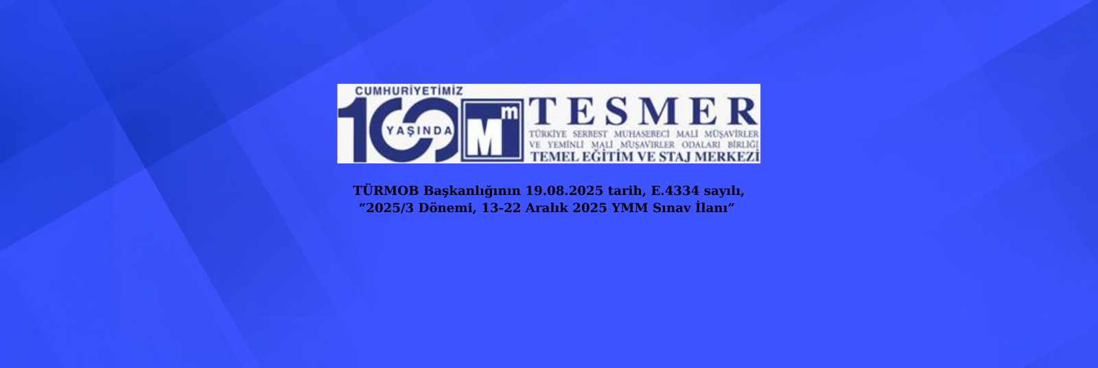 TÜRMOB Başkanlığının 19.08.2025 tarih, E.4334 sayılı, “2025/3 Dönemi, 13-22 Aralık 2025 YMM Sınav İlanı”