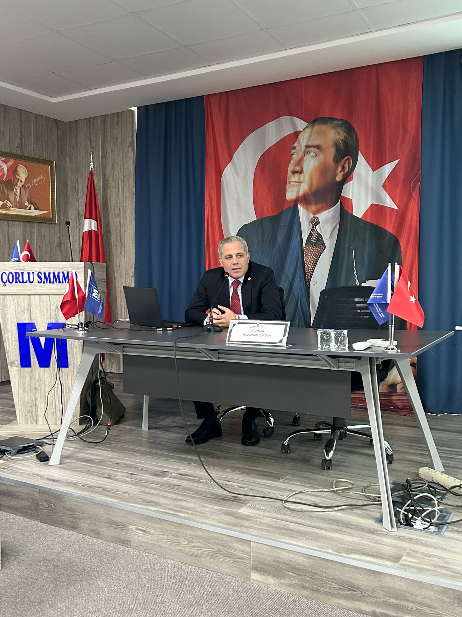 Çorlu Serbest Muhasebeci Mali Müşavirler (SMMM) Odası ile Sürgem işbirliğiyle düzenlenen ve 03 Şubat 2026 Salı Günü saat 14.00'da gerçekleştirilen " Vergi Mevzuatımızdaki Güncel Gelişmeler ve Dönem Sonu İşlemlerine Yönelik Kritik Hatırlatmalar " konulu YMM Sayın Sinan DÜNDAR’ın konuşmacı olarak katıldığı eğitim seminerini; kayıt yaptıran Oda Üyelerimiz ve muhasebe çalışanı birlikte takip etti.