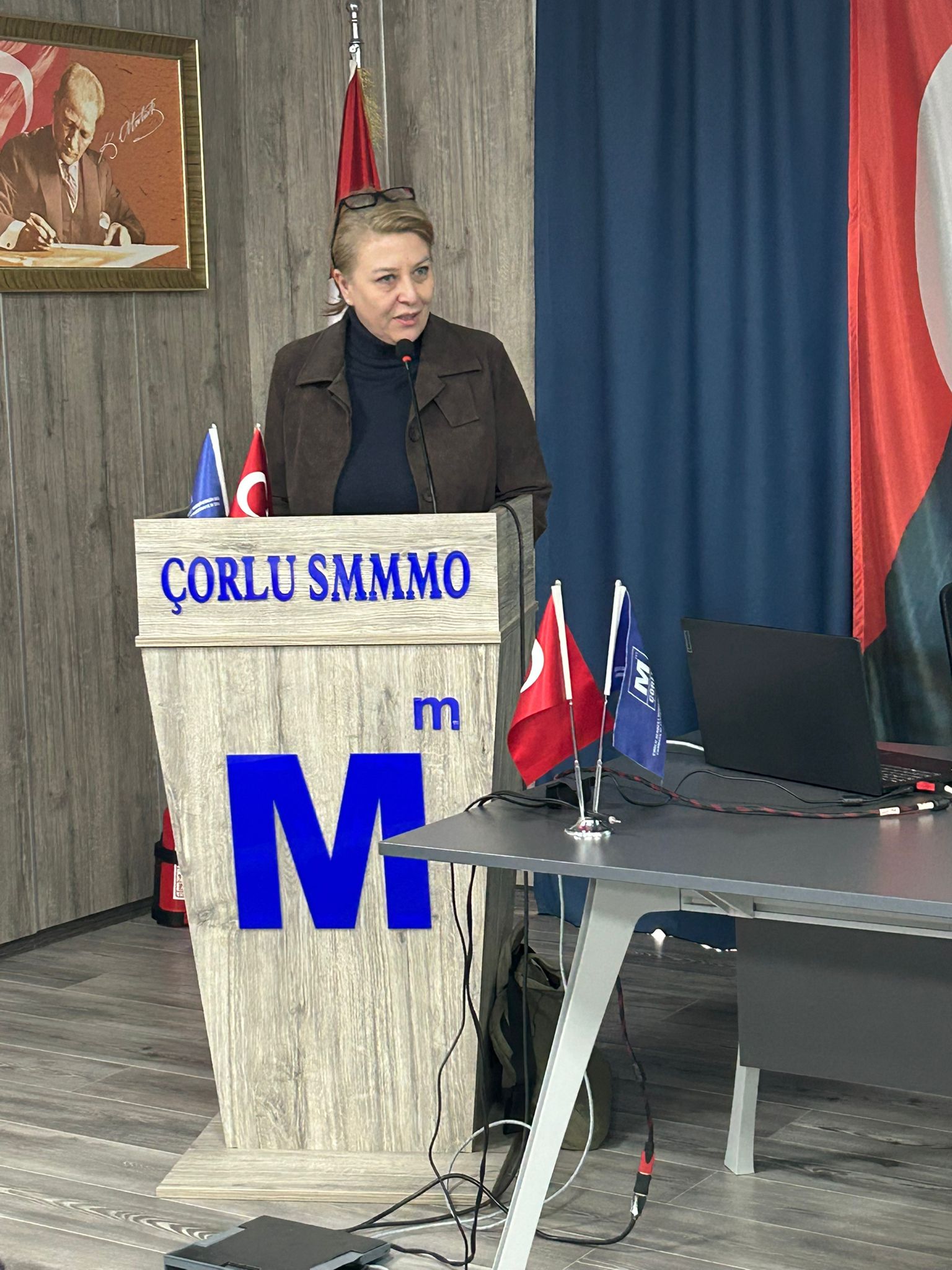Eğitim seminerinin açılış konuşmasını, Odamız Yönetim Kurulu Başkanı Sayın Ayşe EROĞLU gerçekleştirdi.